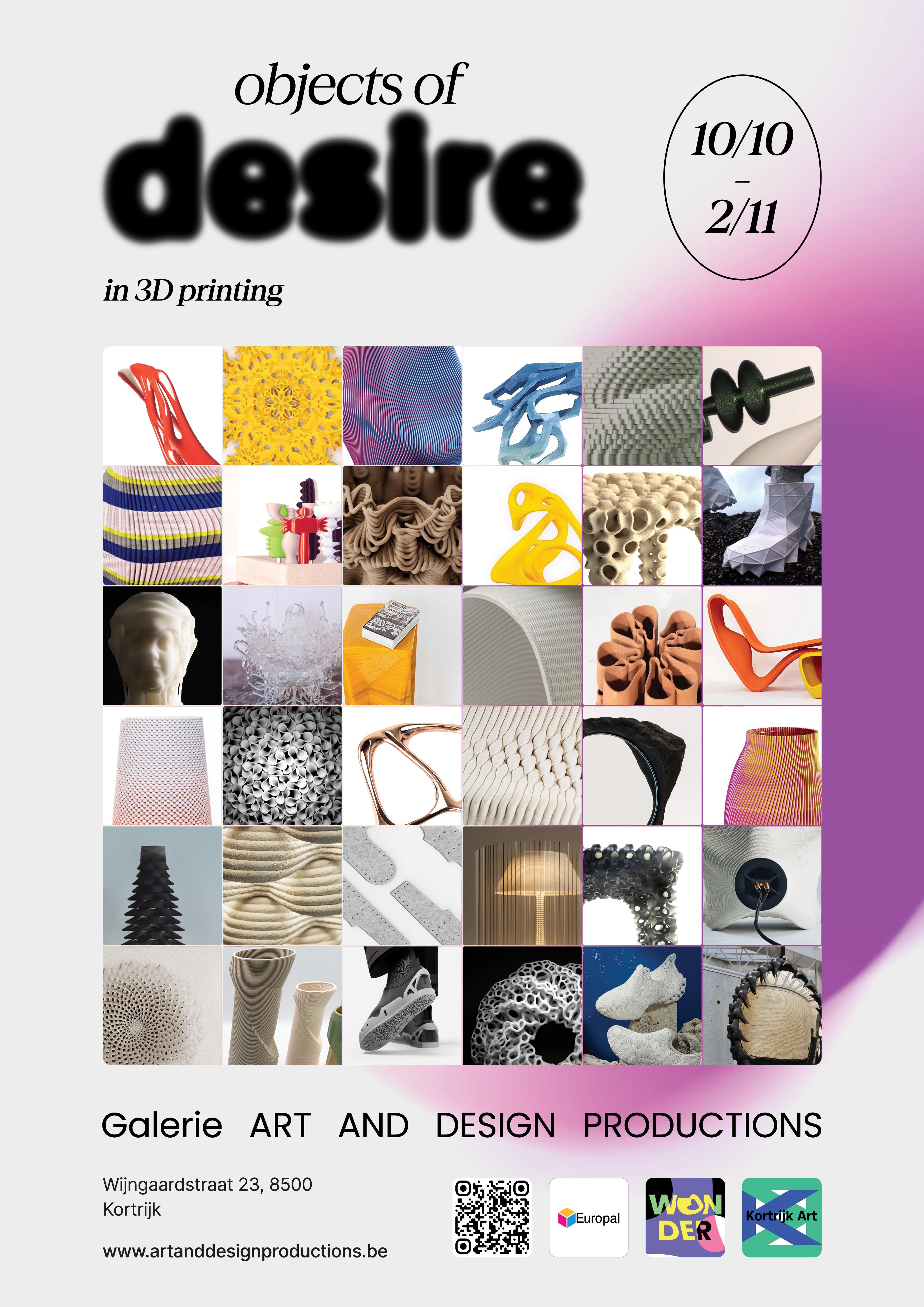 A design contest with exposition during Wonder Festival and Art Weekend Kortrijk showcasing 3D printed art and design works with highaesthetic value. Open call for companies, designers and students.